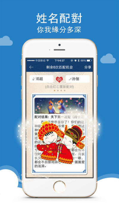 3.姓名配对,从姓名寻找两人的缘分,感情不再徘徊迷茫,准确率达到99%。