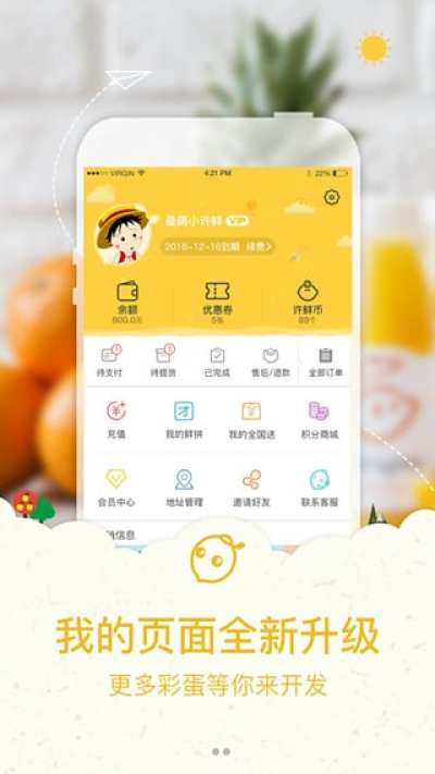 许鲜app是一个主要帮助大家在线预订水果的手机应用,这里的水果种类很多,基本上都可以在这里找到,你下单之后,第二天就可以拿到新鲜的水果了,效率还是很高的,平时喜欢吃水果的朋友必备哟!
