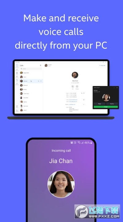 保持通畅:直接通过电脑拨打和接听语音通话。通过访问手机的完整联系人列表,轻松在电脑上拨打电话,所有联系人触手可及。