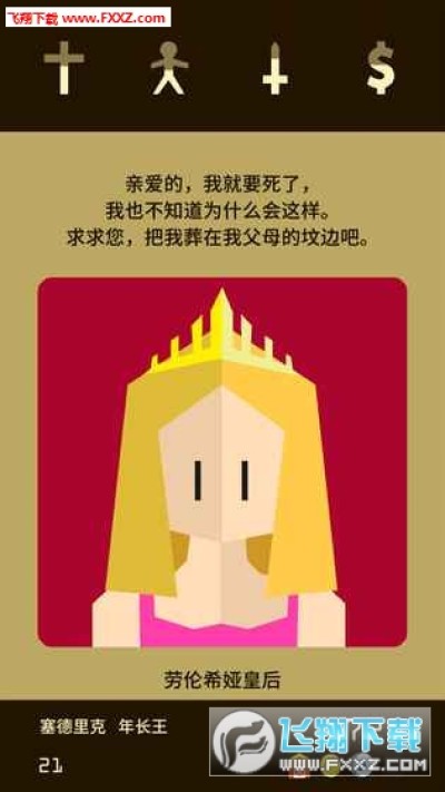 本作是一款简单上手的卡牌策略游戏,玩家可以通过自己的智慧来改写王国的命运。游戏以年为单位进行,游戏中每年玩家都可以使用卡牌做出不同的动作,而这些动作将会对王国发展造成影响。玩家可以选择派军出征,也可以生下继承人,或者是发展国家的经济、安稳民心。