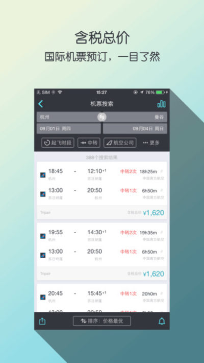 2.国际机票增加更多可以直接在APP内直接预定(免跳转)的供应商,快人一步订到低价机票;