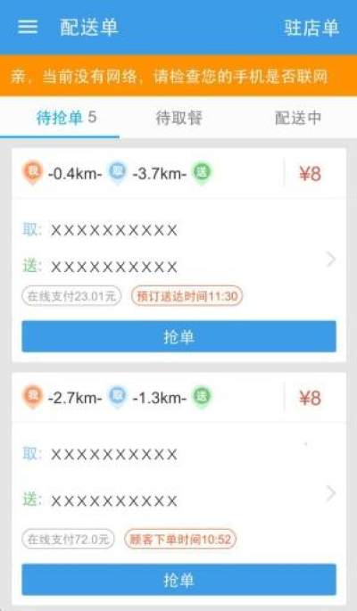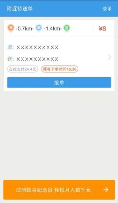 配送员此前是手动整理的订单,蜂鸟飞侠App则可以帮助配送员自动获取任务订单(配送员可以自行选择接取订单,餐厅也可派发),订单可移动化管理。在接触用户方面,蜂鸟可通过免费系统语音电话一键通知目标位置的多个用户。