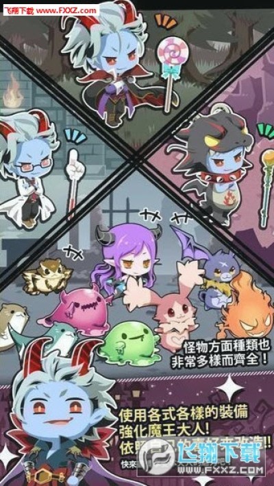 游戏的操作也非常简单,玩家通过点击屏幕即可控制魔王展开攻击。通过战斗可获得服装、武器和使魔,慢慢收集这些道具,组成魔王大军开展侵略吧!