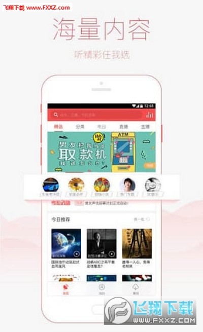 5.明星主播:袁T飞,青音,方舟子,老冀,金山,度娘,肉包妹等做客考拉FM电台收音机,打造独家网络电台节目;张杰,李宗盛,邓紫棋 ,张信哲,刘若英,张靓颖,范玮琪,尚雯婕百名音乐人推荐