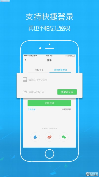 【快捷登录】支持短信快捷登录,再也不怕忘记登录密码