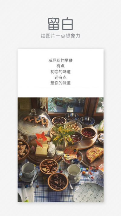 留白:给照片留出一片白,让遐想补完情感。还有图片诗,给图片诗意和感情~