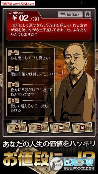 人类价值诊断是一款非常有趣的模拟类休闲手游,游戏中的主要玩法就是根据各种各样的问题,然后通过玩家给出的选择来评估出自己的人生价值,在这世上每一个人都有着属于自己的价值观,你觉得自己值多少钱呢?赶紧来评估一下吧!
