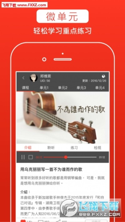 老师每个锦囊课以教一首曲子或知识为目标,把课程汇整精华并切成多个几分钟的小单元。每天几分钟,让你轻松学会弹奏一首歌!