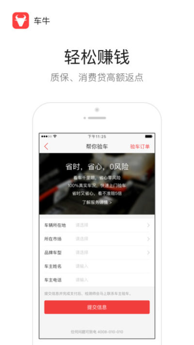 6.【检测服务】车商不必亲自到现场看车,车牛专业团队为您代劳跑腿,验证车况,并提供检测车源保障。
