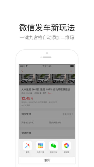 1.【一键同步】一次发车同步至15个二手车买卖平台,发车更省力!