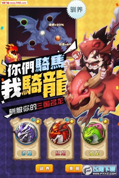 驯龙三国是一款画风极为Q萌的三国题材对战类手机游戏,游戏中拥有着各种各样独特的战斗系统,全新的画风以及题材,各种各样的人物形象设计,你将会带领他们一起去征战这个世界,全新的冒险和挑战都在等着你!喜欢的小伙伴不要错过哟!