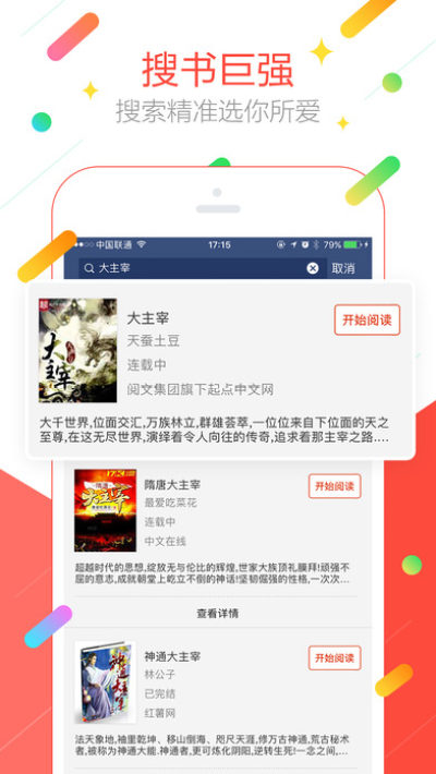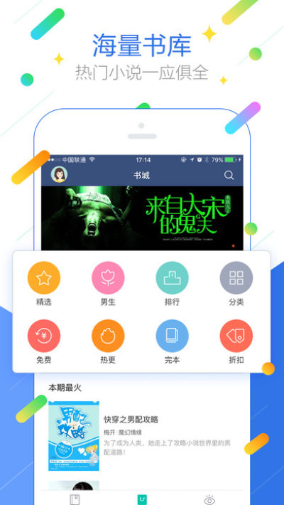 视觉盛宴:每个图标,每项配色都经过仔细的打磨,设计上简洁却不简单;仿真的翻页,清秀的文字,多样的阅读模式,打造出最优质的阅读环境。