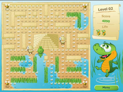勇敢的小鳄鱼是一款动作冒险游戏,玩法与民同乐吃豆人非常相似。 游戏中小鳄鱼迪克是一个聪明的家伙,虽然总是有两个坏蛋想把他抓住,但是每次都让他逃脱。迪克是一个经常帮助人们消灭蚊子的鳄鱼,即使在逃命的情况下,他也没有忘记自己的使命。游戏是经典的吃豆模式,大家一起来回顾吧。