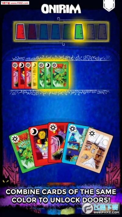 迷梦人游戏中的卡牌一共分为四种颜色,而且每张卡牌都标记有一个符号,符号分为月亮、太阳、或者钥匙。若是玩家摸到三张颜色相同但符号不同的卡牌,则可以获得对应颜色的门。另外,当玩家抽取到一张门的颜色和手牌里钥匙的颜色对应,那么玩家可以通过丢弃钥匙获得这个门。此外有一种噩梦卡可以强迫玩家丢弃钥匙或者已有的门。