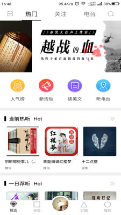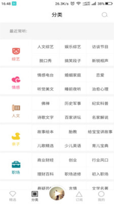蜂铃FM软件内容多并且使用方便、分类齐全。大量的有声故事,综艺节目、人文、情感等。更新速度不错,网络电台跟网络音乐节目内容多,声音优美。蜂铃FM还可以自己一键上传属于自己的声音。
