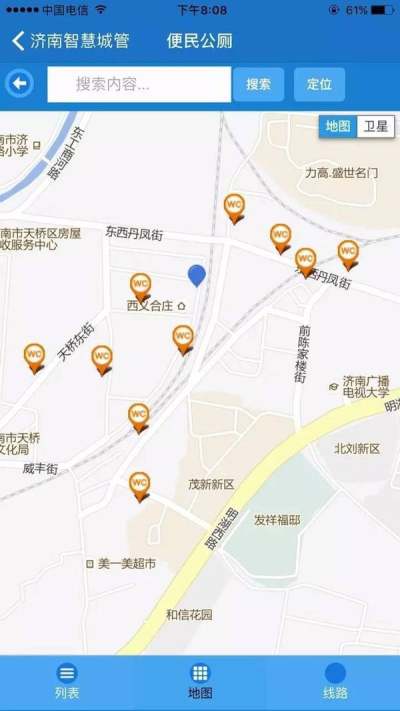 “济南智慧城管APP”为咱市民提供了现代化的信息交流方式,也搭建起一座与市民沟通的桥梁,提升市民对城管工作的参与度,APP的建设,旨在打造服务型政府,深化全民共管,以民生诉求为导向,创新城市管理模式,推动社会化采集,可以让市民方便的参与到城市管理中。目前,已经有1000余家具备条件单位加入到联盟,开放内部厕所,其中包括企事业单位、宾馆酒店、商场超市等,打开‘济南智慧城管’APP,搜索相应地点,就能很快查询到身边的厕所。