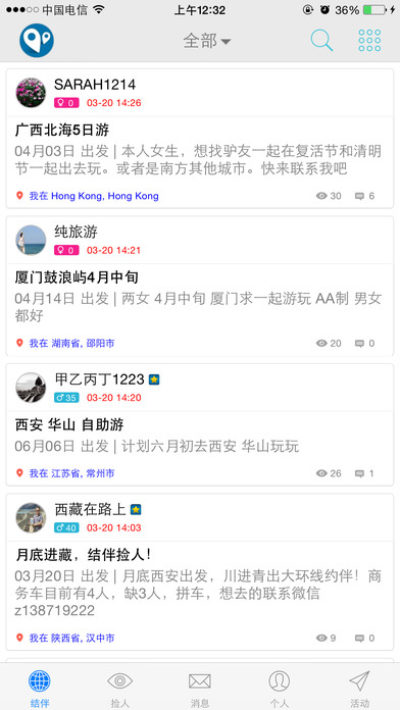 无论在旅行前还是旅行中,都可以用结伴游发出结伴信息,寻找志同道合的小伙伴共同踏上旅途。