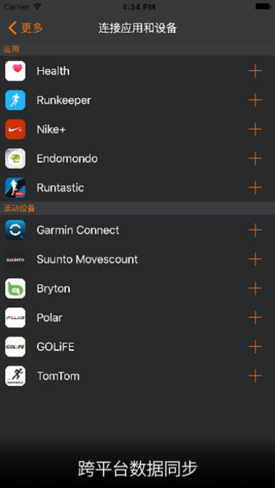 更兼容:支持Garmin、Suunto、TomTom、Polar、Bryton、GOLiFE和Runkeeper、Endomondo、Runtastic等第三方数据同步,还可连接苹果Health。支持标准蓝牙BLE心率带和心率手环,包括但不限于Polar、迪卡侬、Wahoo、Alatec、Epson、宜准等心率带,Scosche Rhythm+、Epson、小米心率手环1代和2代等心率手环。国内唯一使用Apple Watch持续测量心率功能。