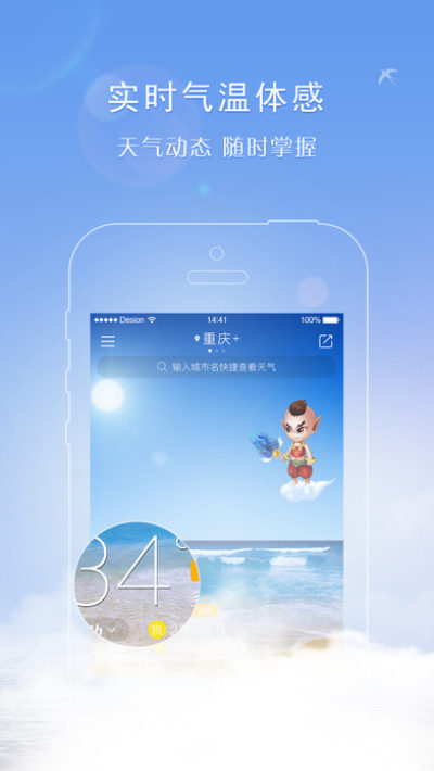 天气君,原名为天气宝,是天气网推出的手持终端应用。覆盖国内外5000多个城市天气信息,天气信息准确全面,气象数据精准至分钟级和公里级,实时监控天气状况,阴晴雨雪天气早知道。提供空气质量、污染指数、温度趋势、pm2.5等精准天气信息!提供穿衣、洗车、紫外线、感冒、运动、旅游等生活指数。