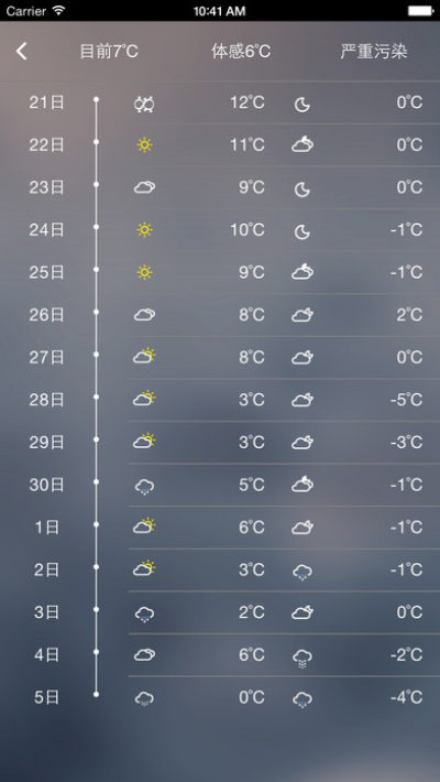 预报信息——24小时天气及温度预报;未来天气信息及趋势对比;支持2486个国内城市区县和676个国际城市。