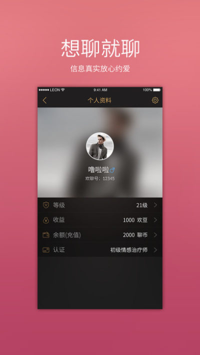 欢聊app是一个功能强大的陌生男女约会交友软件,你可以在这里寻找任意类型的异性朋友来陪你聊天,而且想聊什么就聊什么,没有任何的话题限制,另外所有聊天内容都是绝对保密的,不用担心会有隐私泄露,感兴趣的朋友快加入进来吧!