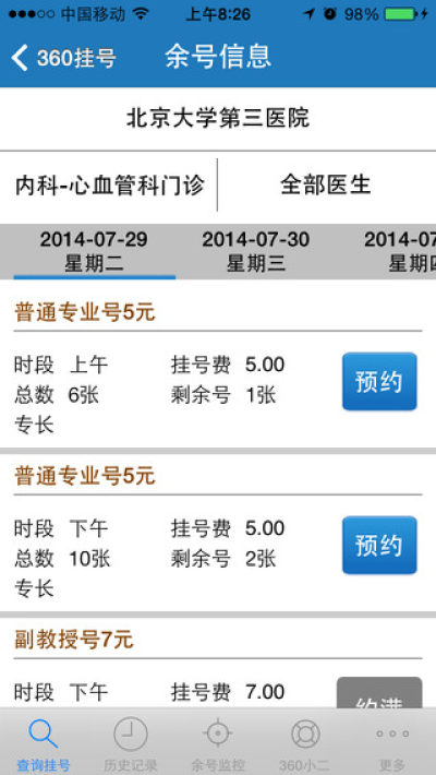 “360挂号”三部曲:查询余号、余号监控、小二求号,这里没有你挂不上的号。