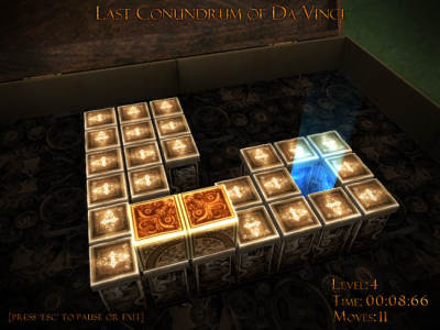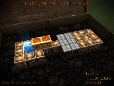 达芬奇的最后谜题是是款有关《列奥纳多·达·芬奇的机械谜题》的解迷小游戏。在达芬奇的最后谜题中游戏主人公的办公桌上出现了一个神奇的包裹,上面没有发送人的信息,但是有附加一份备忘录,上面写着:“我希望你的解开这最终的远古谜题”。打开包裹后,一个陈旧的木质盒子上面镶嵌着金色的图案,而下面的标题则注释着《列奥纳多·达·芬奇的机械谜题》开动你的脑筋来解开这最后的谜题吧,谁才是真正的胜利者