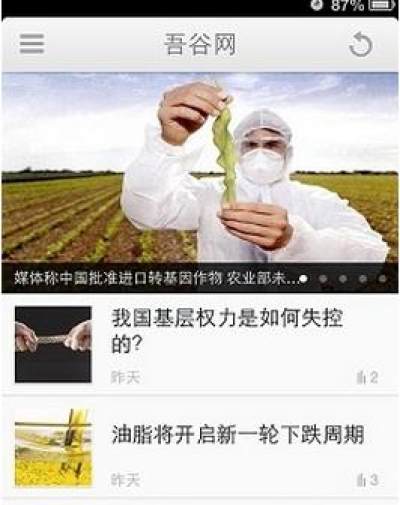 吾谷网app自动为你推送每天最吸引人、最受欢迎的农业相关新闻资讯,让你可以拿着手机就知道天下农事,每月还有大宗农产品平衡表发布,需要的小伙伴们快来下载官方最新版吾谷网手机客户端试试吧