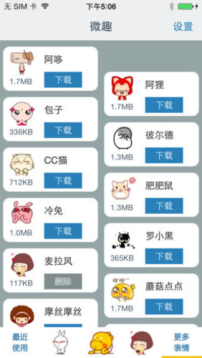 里面包含各种各样的表情,有萌系列、猥琐系列、搞怪系列等,每段时间会更新新的表情,绝能让你感受到不一样的聊天乐趣!
