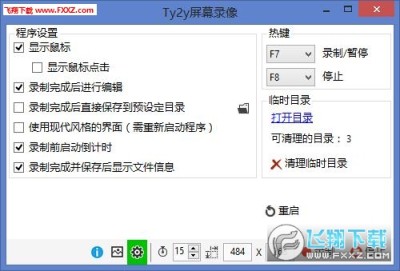 在程序设置中,可以选择是否录制鼠标及是否显示鼠标点击,这是个实用且重要的功能,如果制作教程会经常用到。