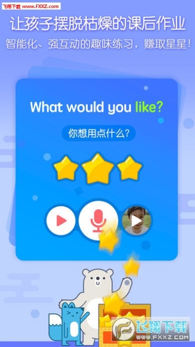 丰富趣味的课后作业,用星星替代小红花,即时满足孩子的成就感,让孩子在激励中勇敢前行;