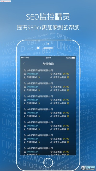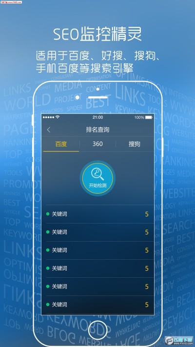 SEO监控精灵app可以帮助SEOer更方便的对网站关键词排名、友链的结果进行实时监控,查询结果准确,不存在地区性差异。目前适用于的搜索引擎有:百度、好搜、搜狗、手机百度,是目前国内主流的搜索引擎。