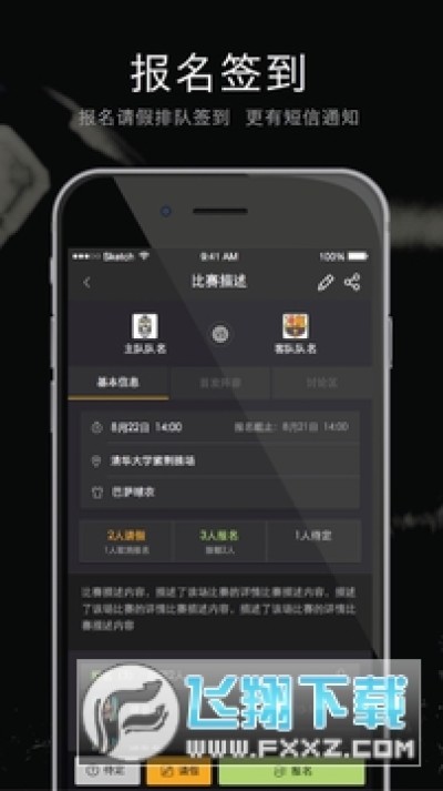 【管理你的球队】 一键创建足球队、邀请队员加入。快速创建比赛并通知球员们参与。队员报名、签到、出勤统计以及比赛结果纪录等功能也都非常便捷。为足球队管理提供便利。