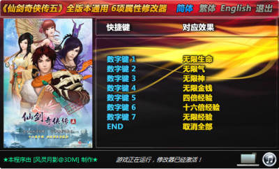 点击简体、繁体、English,可以切换语言 (切换语言后修改器将把该语言设置为默认语言)