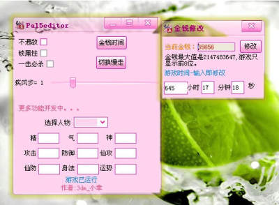 仙剑奇侠传5超速通关器说明:仙剑5超速通关器 由于游戏才开始玩,没有4个人加入队伍,所以属性修改 必杀什么的延后或许明天就能做了 目前有不遇敌、疾风步、人物走路状态、金钱、时间随意改,下一步就是添加一击必杀等战斗铺助