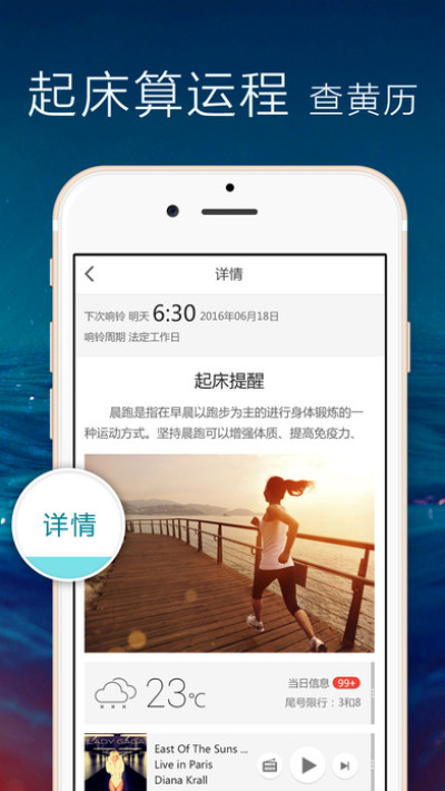 1.法定工作日起床闹钟,让你想睡就睡不受打扰,自定义闹钟铃声和响铃界面,铃声响起时最爱的人就会叫你起床;