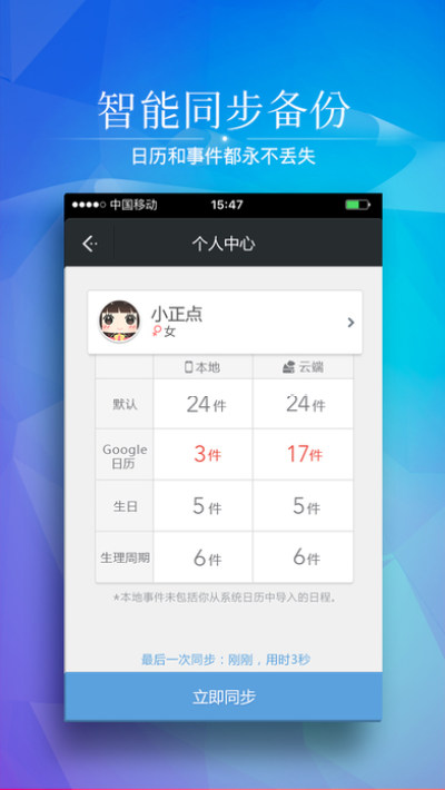 · 完美同步手机日历、谷歌日历(Google Calendar),支持每日、每周、每月、每年等循环提醒