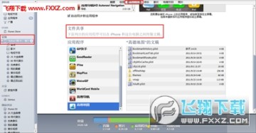 步骤二:将手机通过数据线连接到电脑。启动itunes 正确识别后,选择“设备-对应手机-应用程序-文件共享”