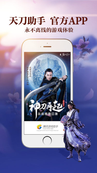 天刀助手是腾讯游戏官方出品的客户端游戏移动服务软件,为《天涯明月刀》用户提供游戏好友和帮派等群组织聊天,资讯、活动和维护提醒、帐号管理、扫码登录及天涯时刻、答题器、假日模式及补签等游戏特性功能,为端游用户提供永不离线的游戏体验。