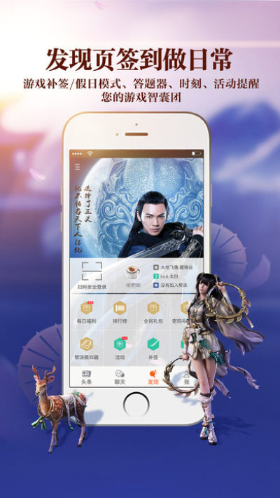 天刀助手app是腾讯官方真多天涯明月刀推出的手机助手,这款软件与游戏紧密联系,提供游戏签到补签的功能,在天刀手机助手app上还可以和游戏好友、帮派好友聊天,不上线也可以聊天,非常方便,天刀助手app手机版也相当于一个答题器,一手掌控,爽爆哦!