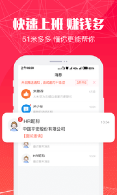 51米多多app是由上海前锦网络信息技术有限公司推出的一款专业求职服务平台,它拥有全国各大城市服务业职位信息,能提供的职位遍布全国380个大中小城市,满足不同地区,不同行业求职者求职需求。同时,用户根据所在城市、职位、薪资、福利填写求职登记后,系统还将进行精准匹配,并为求职者量身推荐找到满意的工作。