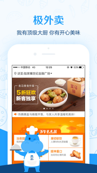 盒马外卖app为想要吃到可口的外卖的用户提供更加周到的服务,订单送达速度更快,线下优质商家更多,让喜欢吃海鲜的你也能够吃到干净卫生的生鲜,还有各种零食让你目不暇接,用户通过盒马外卖邀请码注册还可以领取新手大礼包,需要的小伙伴们快来下载试试吧。