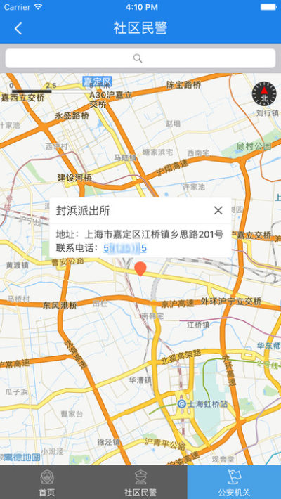 “协助社区民警开展协查”“在线查询办事指南”“实时关注我的社区警情”“嘉定社区民警”APP通过“我的位置”功能,可以快速根据群众的方位匹配所在社区的社区民警信息,通过广泛的实时在线沟通联系,帮助群众解决“身边的麻烦事”。