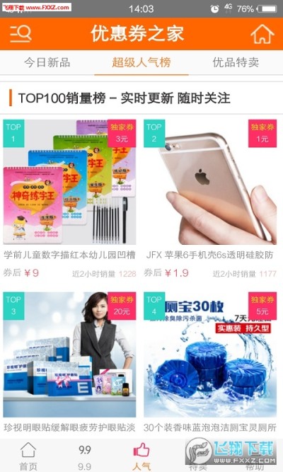 4、人气栏目:实时更新的最受欢迎的商品销量榜单。