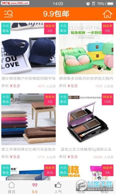 2、9.9栏目:券后价9.9元以内的小而美精品汇;