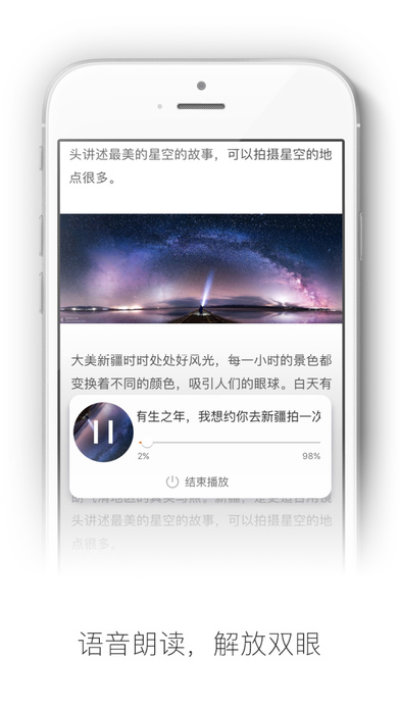 - 不仅能看还能听:不方便阅读时,可以聆听自己收藏的精选内容。