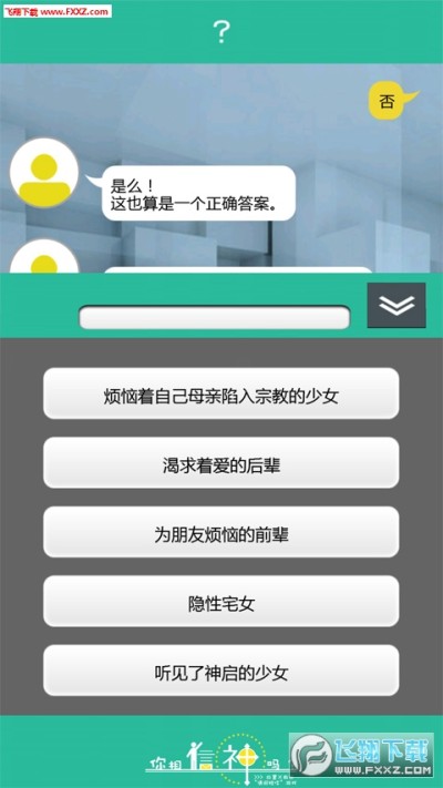¡¶ÄãÏàÐÅÉñÂ𣿹ٷ½ÊÖÓΡ·ÕâÊÇÒ»¿îÍæ·¨ºÍ»Ãæ¶¼·Ç³£³öÉ«µÄÈÕϵrpgÀàÊÖÓΣ¬Õâ¿îÓÎϷĿǰÒÑÆÆ½â£¬ËùÓеÀ¾ß¶¼¿ÉÒÔÃâ·Ñ¹ºÂòºÍʹÓá£ÓÎÏ·ÖеÄÒ»´óÁÁµã¾ÍÔÚÓÚ¶ÌÐŵÄÎÊ´ðÍæ·¨£¬Íæ¼Ò½«»á±»ÌáÎʸ÷ÖÖÎÊÌ⣬ҪÄÍÐÄ¿´ÍêŶ¡£ÓÎÏ·ÖÐÍæ¼ÒËù°çÑݵÄÃÃ×ÓÊÕµ½ÁËİÉúµÄ¶ÌÐÅ£¬ÄãÏàÐÅÉñÂð£¿Íæ¼Ò½«ÒªÔõô»Ø¸´ÄØ£¿