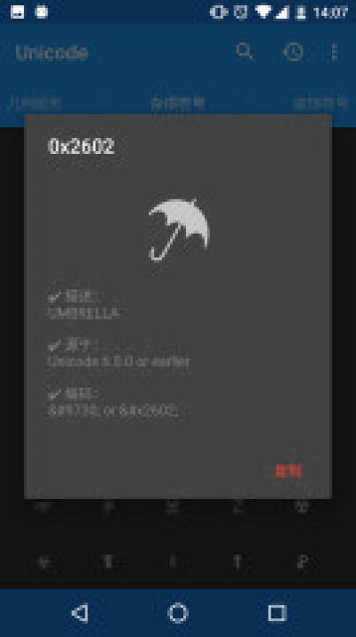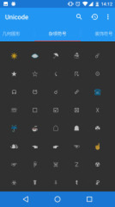 unicode编码app是一款字符查找客户端应用,通过unicode编码可以方便寻找特定字符,查看字符表情详细的描述,并且利用unicode编码就可以快捷复制任意unicode编码,提高开发效率,非常的实用,快来下载unicode编码体验吧!