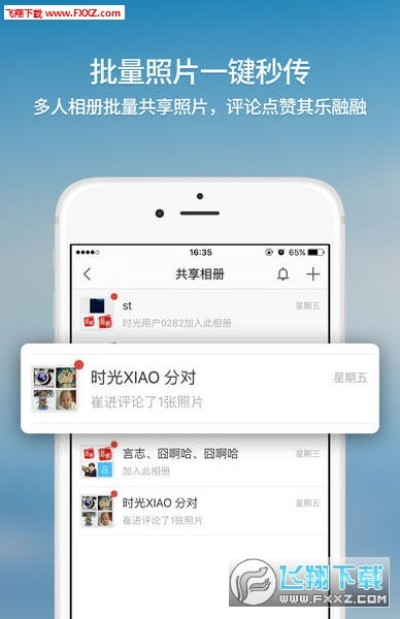 一键创建共享相册,支持多人分享照片集,解决旅行、宝宝、party等海量照片多人共享难题,还可以省流量分享到微信、微博、QQ空间哦!