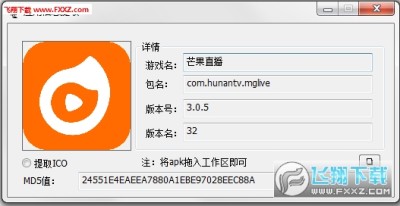 首先在本页面下载APK提取PNG工具,解压缩,运行“ApkResolve.exe”,进入主界面 如果需要提取“ICO”图标,需要勾选,然后将需要提取的APK文件拖向正方形方格即可提取到图标和相关的APK文件名称和版本号以及MD5值。